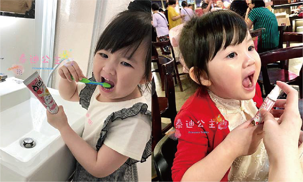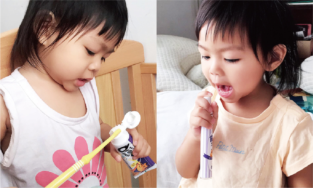 使用歐樂芬兒童牙膏來回刷牙,去除牙齒髒汙,減少蛀牙發生率。