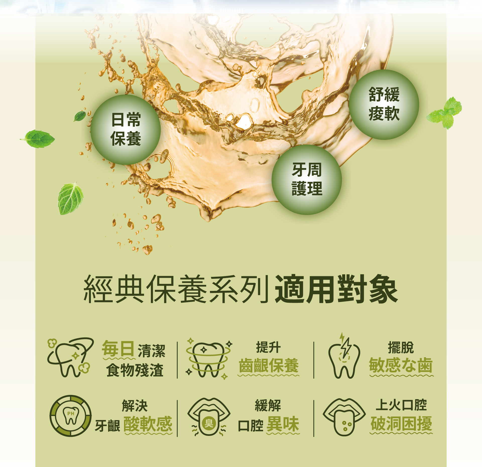 ◇天然口腔保健液-針對一般大眾及牙周不適族群設計,溫和不刺激,維持口齒清新外,搭配正確刷牙方式,可幫助清除牙菌斑、緩解牙周不適,幫助強化口腔健康。