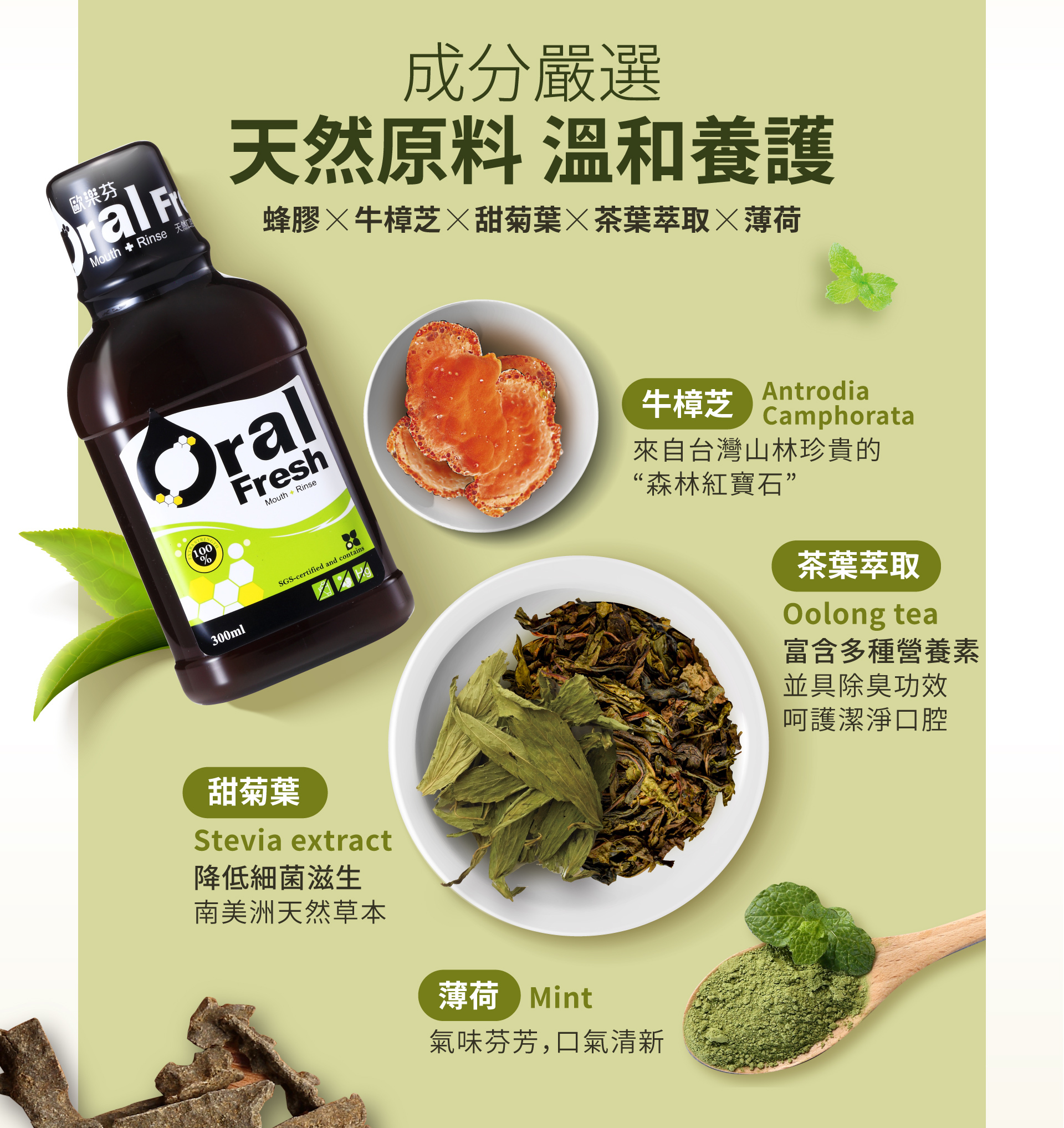 ◎天然口腔保健液/漱口水:任何牙周狀況(包含嘴破潰爛)皆可使用,無酒精無西藥,清潔口腔的同時,不傷害口腔黏膜,配合正確刷牙習慣,能改善口腔健康。