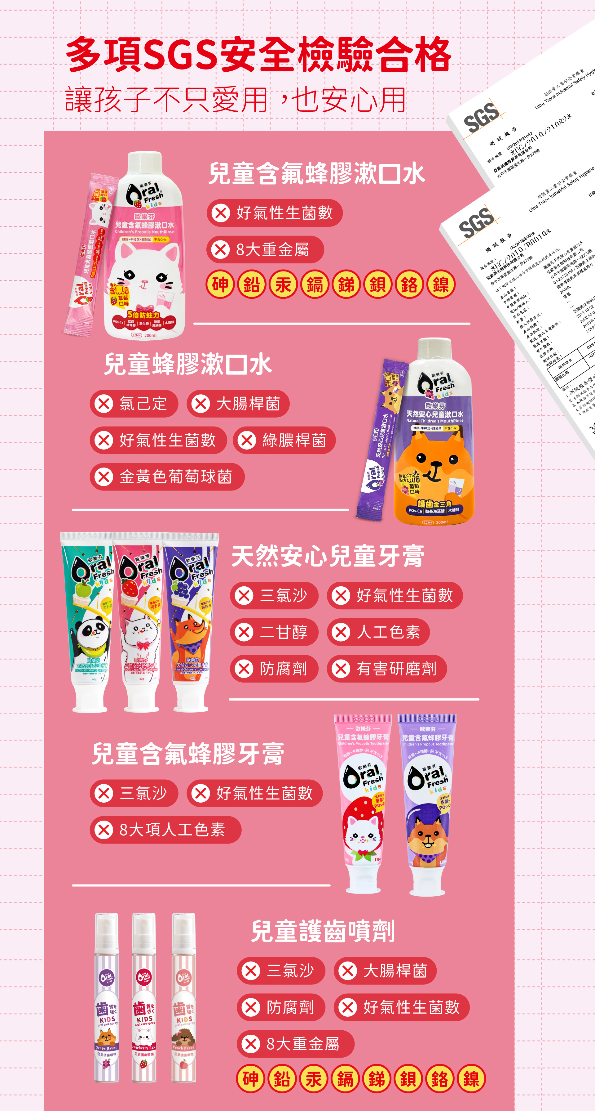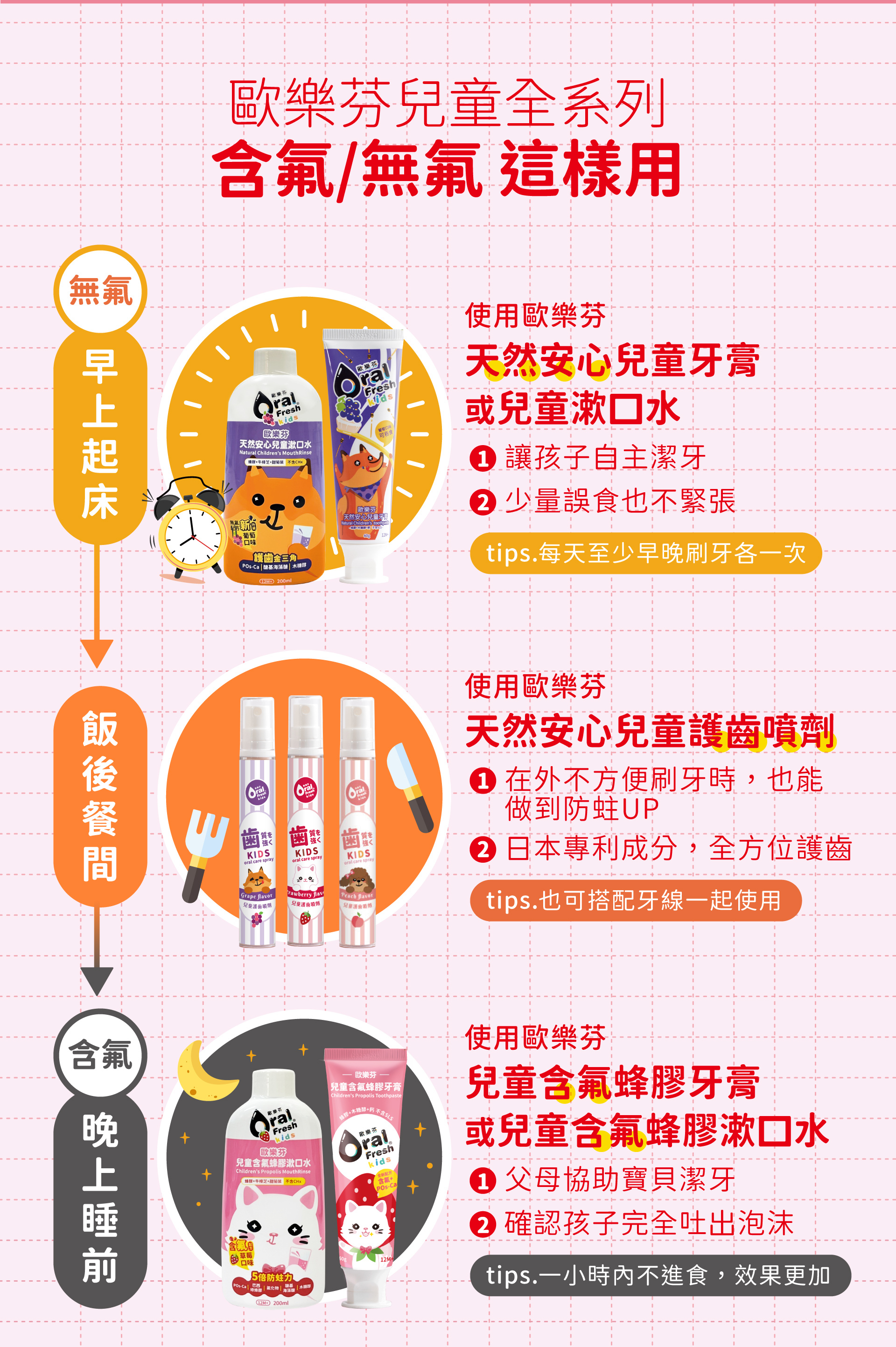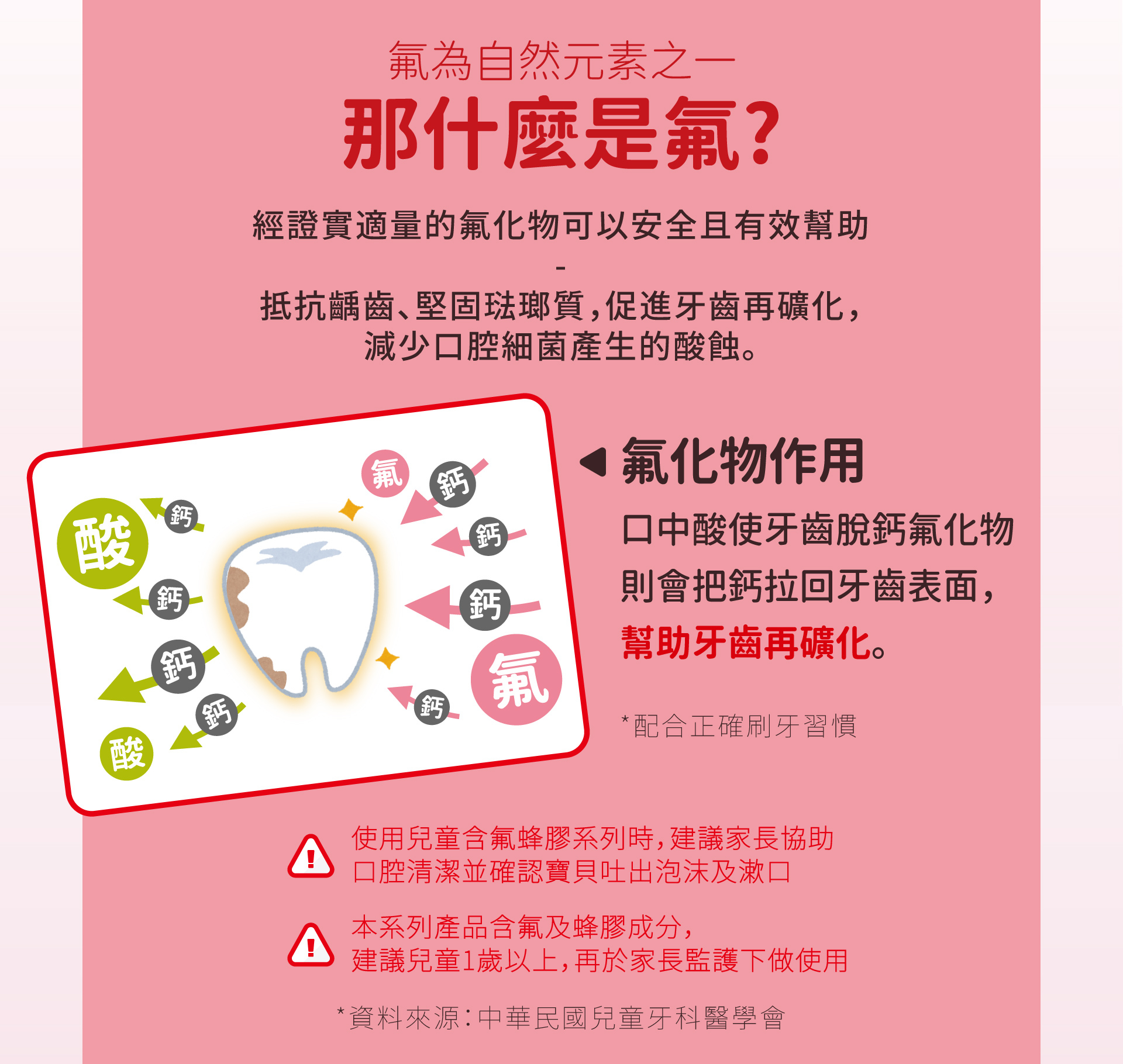 無對氟化物過敏之初長牙嬰童、學齡前、學齡後兒童皆適用