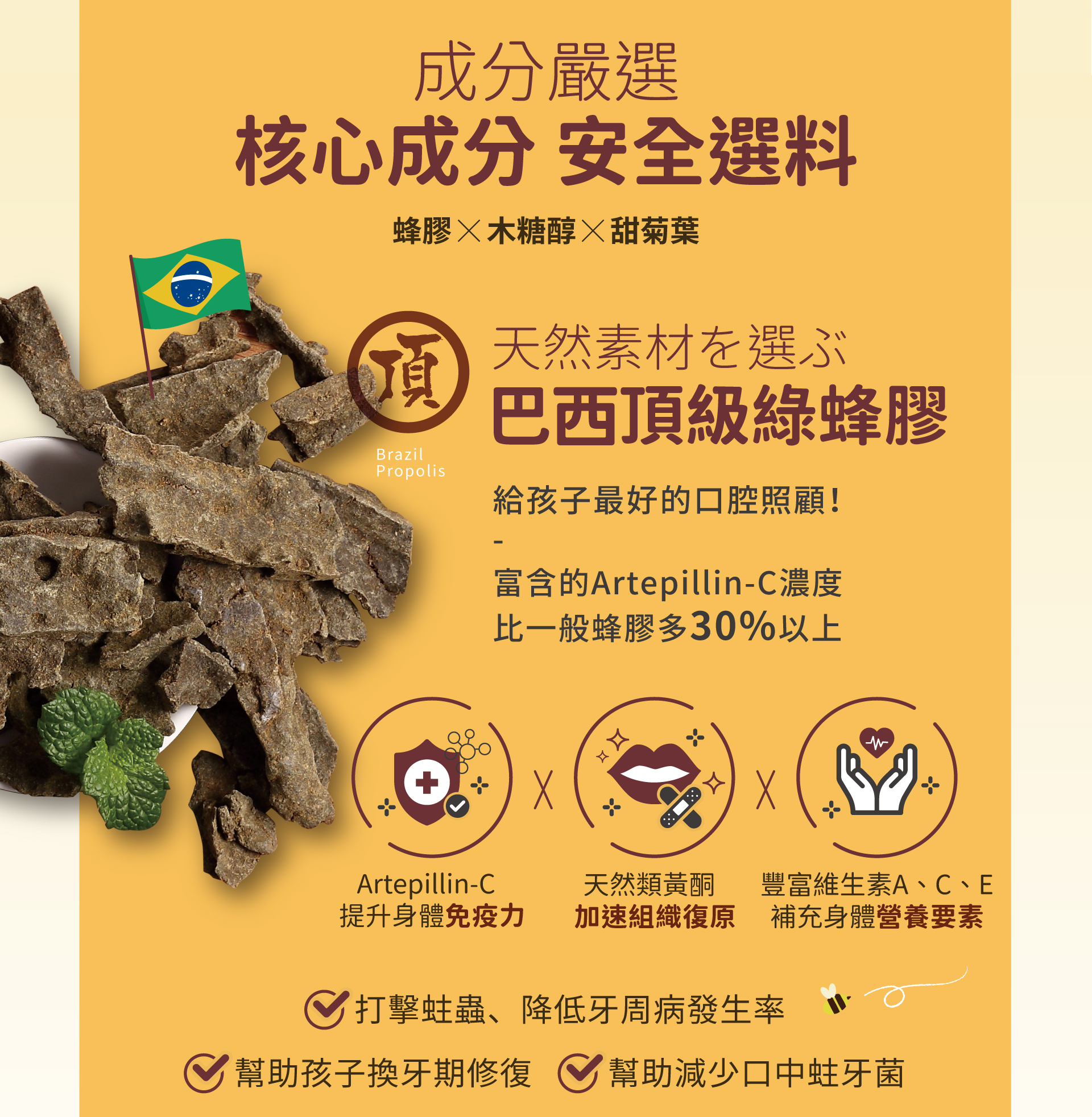 ◇含氟草莓:自有農場巴西頂級綠蜂膠、氟化物(225PPM)、POs-Ca、醣基海藻醣、木糖醇、牛樟芝萃取
