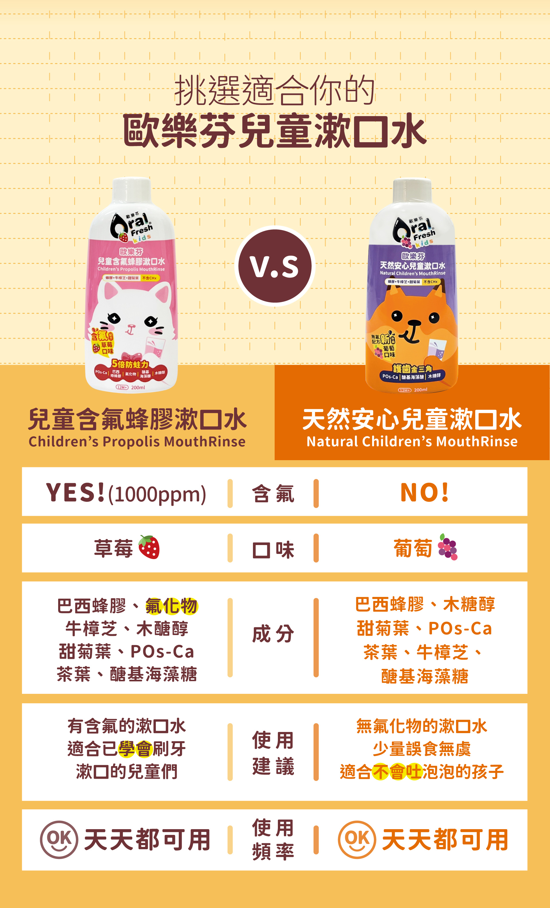 ◇無氟葡萄:初長牙嬰童、學齡前、學齡後兒童皆適用