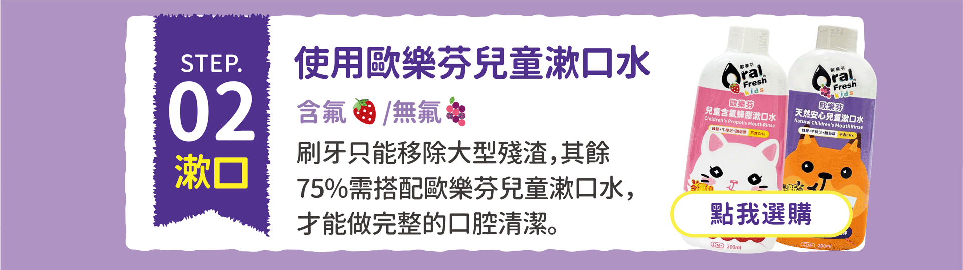 3.初期使用,需有家長在旁協助教導正確漱口方式。
