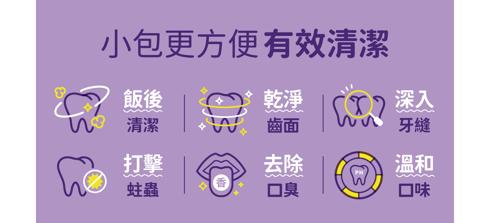1.每次1包12c.c.,含於口中輕漱60秒後吐出。*請一次性使用,勿分次使用。