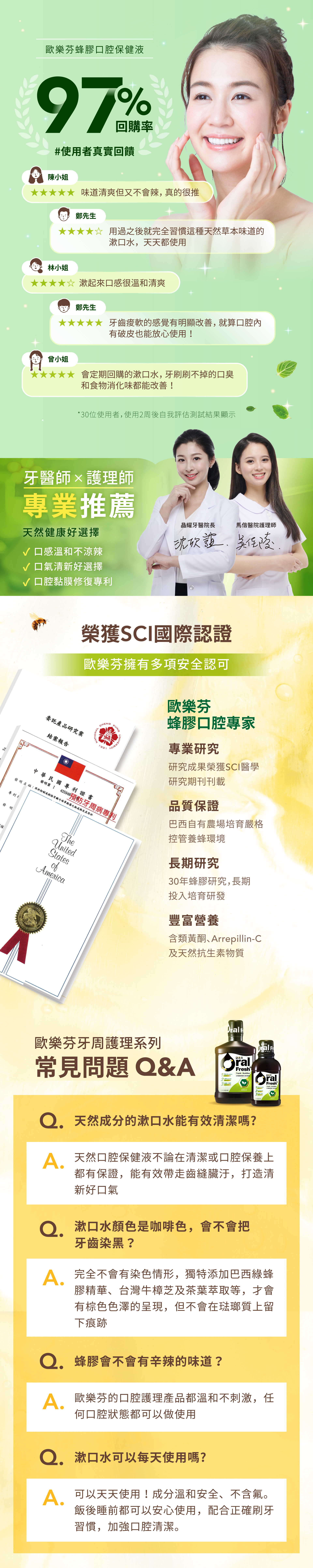1.使用前請先搖勻,以10~20ml做口腔清潔,含口中並輕輕漱口,一分鐘左右吐出即可。